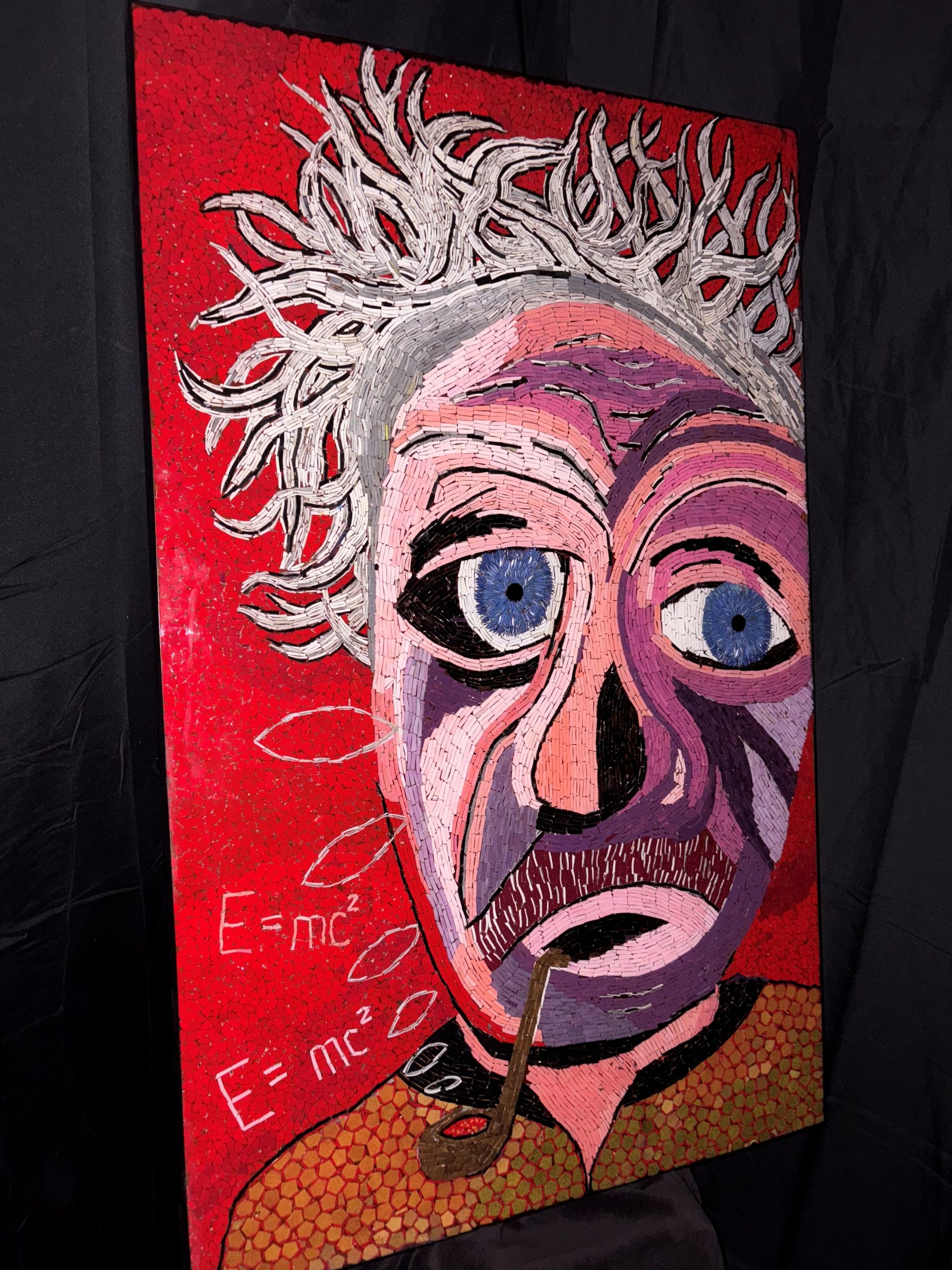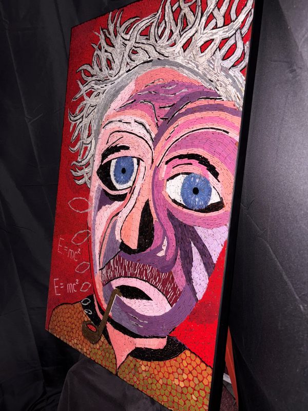An imaginative artist has crafted a remarkable mosaic portrait of Albert Einstein, the legendary thinker, using thousands of meticulously cut-up pennies. Each coin is sliced, shaped, and arranged to highlight Einstein’s iconic features—his wild hair, deep-set eyes, and thoughtful expression—bringing depth and texture to the painted cut pennies. By repurposing everyday currency into a tribute to one of history’s greatest minds, the artist creates a powerful contrast between material value and intellectual legacy. This intricate artwork not only honors Einstein’s contributions to science and humanity but also reflects the artist’s ingenuity and dedication to transforming the ordinary into the extraordinary.